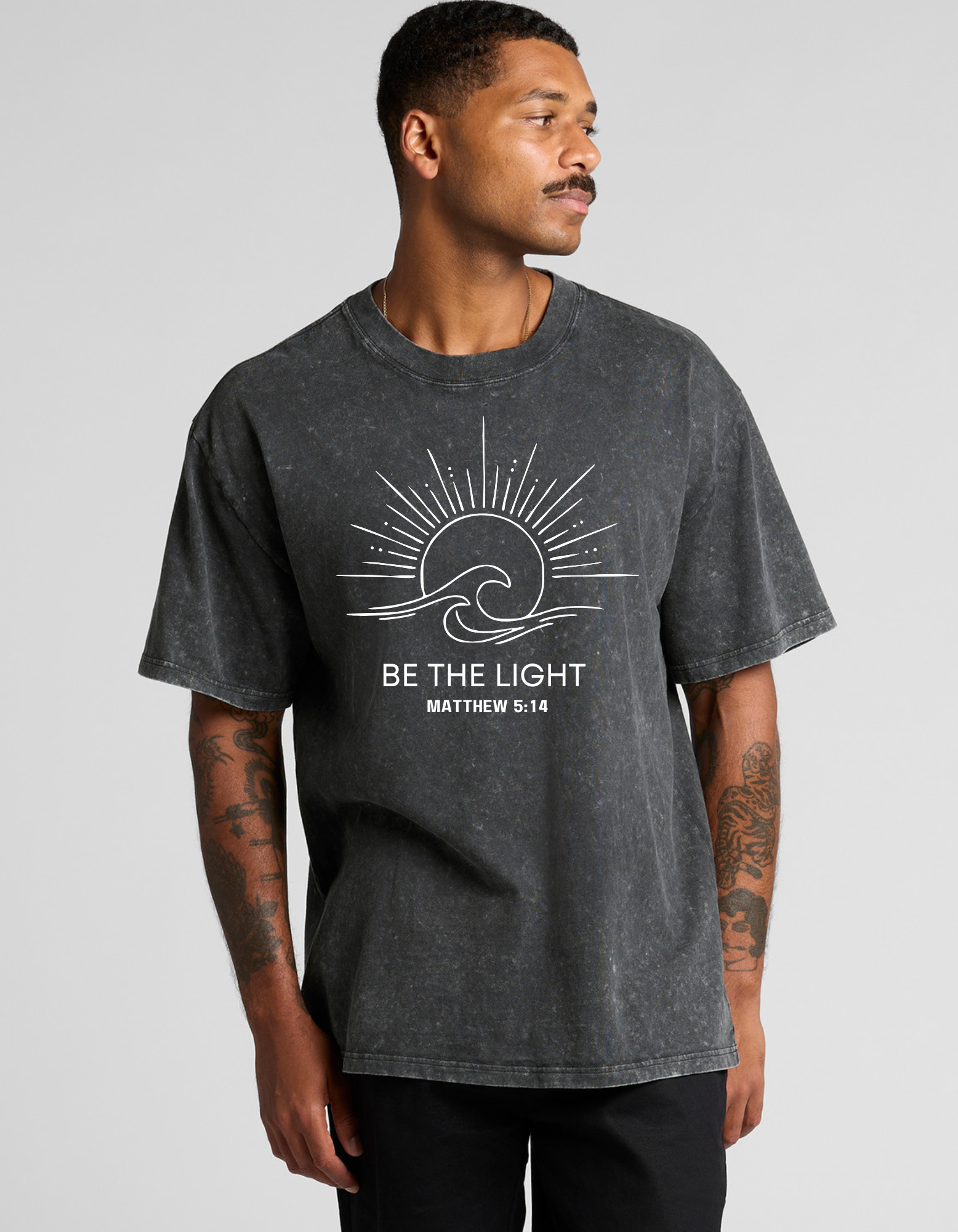 • Front: “Be The Light” design.